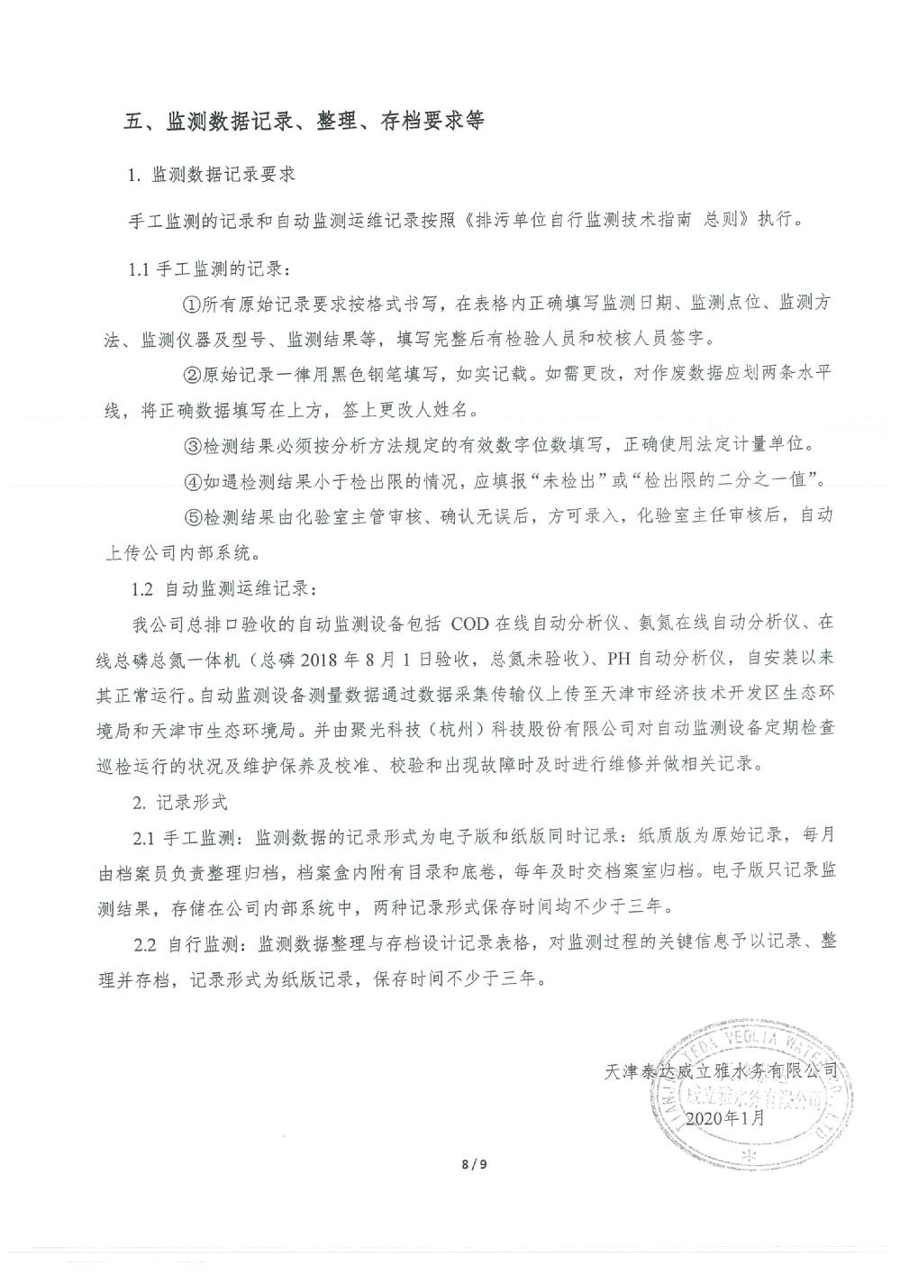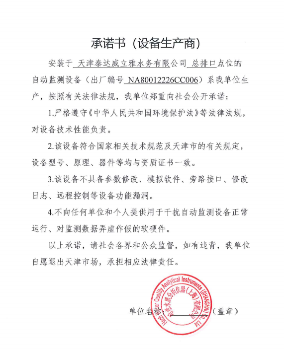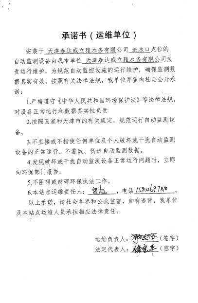 ? 公司出水指標(biāo)數(shù)據(jù)經(jīng)現(xiàn)場(chǎng)數(shù)據(jù)采集儀采集后直接上傳至天津開發(fā)區(qū)環(huán)保局及天津市環(huán)境監(jiān)測(cè)中心。天津市環(huán)境監(jiān)測(cè)中心直接將接收自公司的上傳數(shù)據(jù)發(fā)送至國家環(huán)保部。實(shí)現(xiàn)了對(duì)我公司出水指標(biāo)數(shù)據(jù)的實(shí)時(shí)在線監(jiān)控和監(jiān)督管理。 自2014年,依《國家重點(diǎn)監(jiān)控企業(yè)污染源監(jiān)督性監(jiān)測(cè)及信息公開辦法(試行)》,主要污染物排放情況經(jīng)天津市重點(diǎn)企業(yè)自行檢測(cè)數(shù)據(jù)發(fā)布系統(tǒng)對(duì)外公布,主動(dòng)接受社會(huì)公眾監(jiān)督。 信息發(fā)布平臺(tái) 2025年第3季度環(huán)境信息公開:天津泰達(dá)威立雅水務(wù)有限公司 公司名稱:天津泰達(dá)威立雅水務(wù)有限公司 統(tǒng)一社會(huì)信用代碼:91120116663055985N 法定代表人:徐寶平 生產(chǎn)地址:天津經(jīng)濟(jì)技術(shù)開發(fā)區(qū)南海路188號(hào) 聯(lián)系電話:022-62018666 處理規(guī)模:10萬m3/日市政污水 生產(chǎn)經(jīng)營和管理服務(wù)的主要內(nèi)容: 水處理系統(tǒng)工程集成;城市污水處理、工業(yè)廢水處理、海水及苦咸水淡化處理;再生水、工業(yè)純水、水處理設(shè)備銷售;水處理設(shè)施運(yùn)營、管理及相關(guān)的設(shè)計(jì)、咨詢、技術(shù)服務(wù)。 其他信息: 天津泰達(dá)威立雅水務(wù)有限公司成立于2007年7月。天津泰達(dá)投資控股有限公司與法國通用-威立雅水務(wù)集團(tuán)各持股51%與49%。由天津經(jīng)濟(jì)技術(shù)開發(fā)區(qū)管理委員會(huì)公用事業(yè)局授權(quán),天津泰達(dá)威立雅水務(wù)有限公司負(fù)責(zé)開發(fā)區(qū)第一污水處理廠及其附屬設(shè)施、海晶東雨污水泵站、開發(fā)區(qū)電鍍廢水處理中心的運(yùn)營、維護(hù)保養(yǎng)及經(jīng)營。 項(xiàng)目(出水) 平均值(mg/L) A標(biāo)準(zhǔn)(DB12/599-2015) (mg/L) 化驗(yàn)次數(shù)(次) 合格率(%) 我公司排放口數(shù)量為一個(gè),位于廠區(qū)東南側(cè)。處理后出水排入市政專用排污管道,經(jīng)北排泵站排入渤海灣。2025年7-9月我公司COD、氨氮、總氮、總磷排放總量如下: 148.28 天津泰達(dá)威立雅水務(wù)有限公司為原天津經(jīng)濟(jì)技術(shù)開發(fā)區(qū)污水處理廠,是天津?yàn)I海新區(qū)第一座污水處理廠,位于開發(fā)區(qū)南海路與第十二大街交口處,污水處理項(xiàng)目投資總額3.5534億元人民幣,占地8.1公頃,設(shè)計(jì)能力為日處理污水10萬m3,其中市政污水的比例高于60%。污水處理工藝目前采用“預(yù)處理+SBR+反硝化濾池+臭氧催化高級(jí)氧化+紫外消毒”。脫水機(jī)房、進(jìn)水泵房、預(yù)處理單元和儲(chǔ)泥池的臭氣經(jīng)過收集管道收集進(jìn)入生物過濾塔除臭處理。剩余污泥經(jīng)脫水機(jī)脫水處理,泥餅外運(yùn)處理。工藝系統(tǒng)由在線儀器儀表輸送到中控室實(shí)現(xiàn)自動(dòng)控制。 出水水質(zhì)達(dá)到天津市《城鎮(zhèn)污水處理廠污染物排放標(biāo)準(zhǔn)》(DB12/599-2015)A排放標(biāo)準(zhǔn)。廠界噪聲均滿足《工業(yè)企業(yè)廠界噪聲標(biāo)準(zhǔn)》GB12348-2008(3類)晝、夜標(biāo)準(zhǔn)值。廠界無組織排放廢氣中臭氣濃度、氨、硫化氫濃度均符合《惡臭污染物排放標(biāo)準(zhǔn)》(GB12/059-2018)限值要求。 開發(fā)區(qū)第一污水處理廠現(xiàn)狀主要的大氣影響來自預(yù)處理單元(格柵與沉砂池)和污泥區(qū)(污泥脫水機(jī)房)的惡臭氣體。污泥脫水機(jī)房、污泥料倉、三合一泵房等設(shè)施產(chǎn)生的臭氣集中收集,儲(chǔ)泥池、預(yù)處理單元等采用加罩密閉設(shè)計(jì),臭氣集中收集至生物除臭裝置,除臭效率不低于80%,處理后由15米高排氣筒達(dá)標(biāo)排放。根據(jù)天津市環(huán)保局《關(guān)于天津開發(fā)區(qū)第一污水處理廠改造工程環(huán)境影響報(bào)告書的批復(fù)》,開發(fā)區(qū)第一污水處理廠的衛(wèi)生防護(hù)距離設(shè)為100m。 污水廠廢氣監(jiān)測(cè)結(jié)果表明,廠區(qū)周界監(jiān)測(cè)點(diǎn)位臭氣濃度均低于20(無量綱),符合《惡臭污染物排放標(biāo)準(zhǔn)(GB12/059-2018)的標(biāo)準(zhǔn)要求。 開發(fā)區(qū)第一污水處理廠污水經(jīng)處理后達(dá)到天津市《城鎮(zhèn)污水處理廠污染物排放標(biāo)準(zhǔn)》(DB12/599-2015)A排放標(biāo)準(zhǔn)要求。污水處理廠工藝過程本身沒有生產(chǎn)性廢水排放,所排污水主要為生活污水和污泥處理水,這部分廢水一同返回本污水處理廠的進(jìn)水泵房,與市政污水一并處理。2025年7-9月出水達(dá)標(biāo)率為100%,無超標(biāo)情況。 開發(fā)區(qū)第一污水處理廠主要的噪聲設(shè)備為鼓風(fēng)機(jī),鼓風(fēng)機(jī)位于鼓風(fēng)機(jī)房,并設(shè)置隔音減震措施,其噪聲影響甚微。 監(jiān)測(cè)結(jié)果:廠界噪聲共設(shè)置4個(gè)噪聲監(jiān)測(cè)點(diǎn),執(zhí)行《工業(yè)企業(yè)廠界環(huán)境噪聲排放標(biāo)準(zhǔn)》(GB12348-2008)3類標(biāo)準(zhǔn),根據(jù)監(jiān)測(cè)結(jié)果,各廠界處噪聲均符合執(zhí)行標(biāo)準(zhǔn)要求。 污水廠運(yùn)行過程中產(chǎn)生的固體廢棄物主要為柵渣、沉砂、污泥及生活垃圾